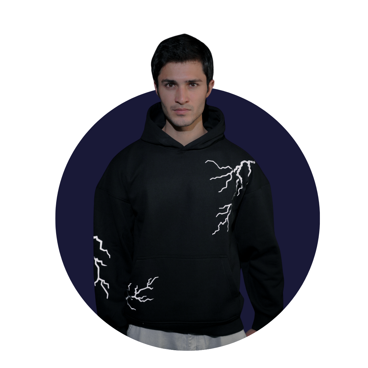Lumin Wear Reflective Lightning Hoodie – Unisex Oversized Comfort Nightwear (Black)