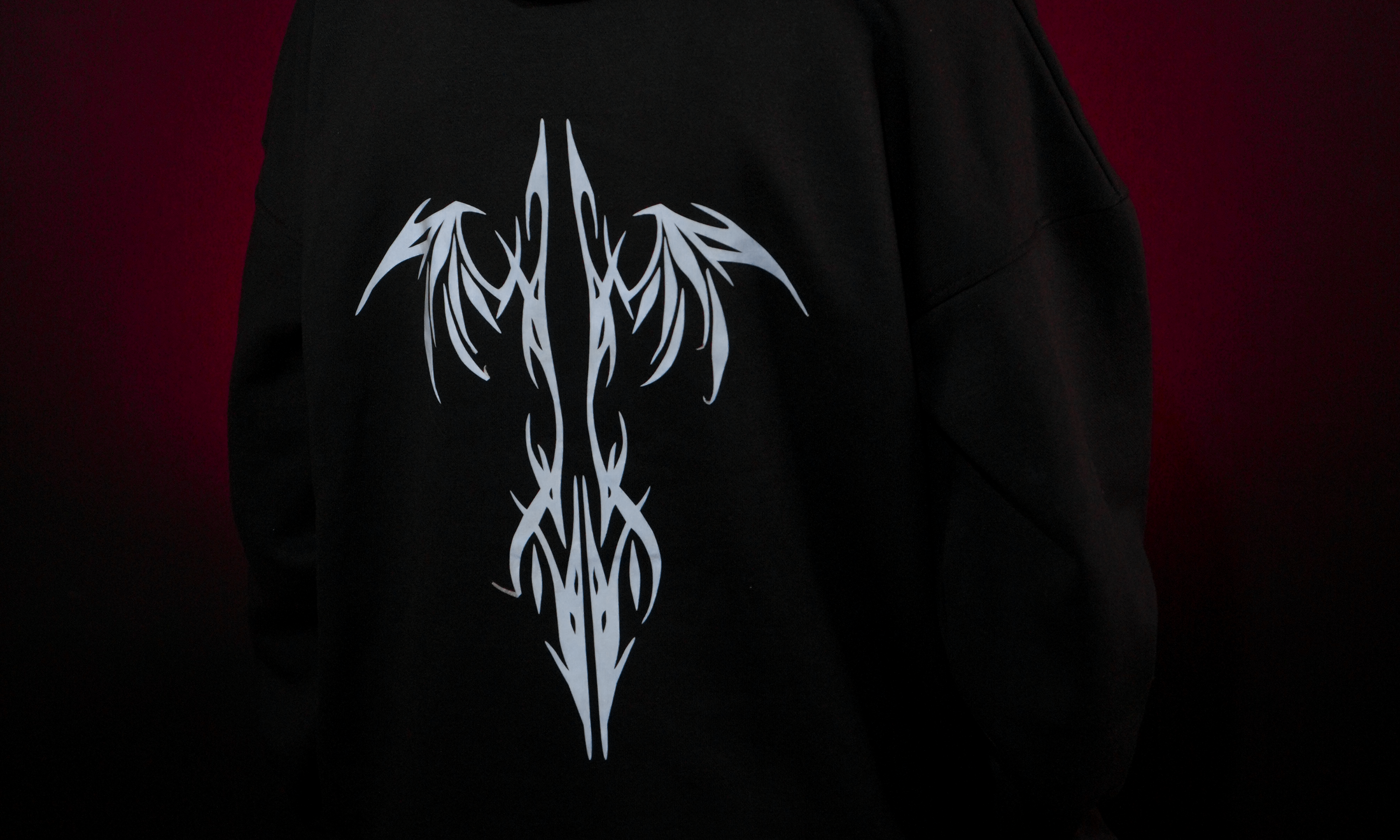 Lumin Wear Unisex Reflective Tribal Hoodie – Comfort Drop Shoulder (Black)
